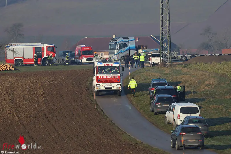 ENNS (OÖ): Bei Bauarbeiten für eine Hochspannungsleitung kam es am Vormittag des 27. Jänner 2025 zu einem Zwischenfall, als ein Bohrgerät auf dem Weg zur Baustelle in eine 110-kV-Hochspannungsleitung geriet.