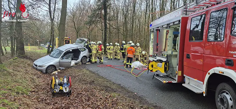 WALSRODE (DEUTSCHLAND): In den Mittagsstunden des 29. Jänner 2025 gegen 11.30 Uhr kommt eine 21-Jährige mit ihrem Fahrzeug auf der Kreisstraße 148 zwischen den Ortschaften Hamwiede und Nordkampen in Walsrode aus ungeklärter Ursache von der Fahrbahn ab und kollidiert mit einem Baum. Die junge Frau wird bei dem Verkehrsunfall schwer verletzt im Unfallfahrzeug eingeklemmt.