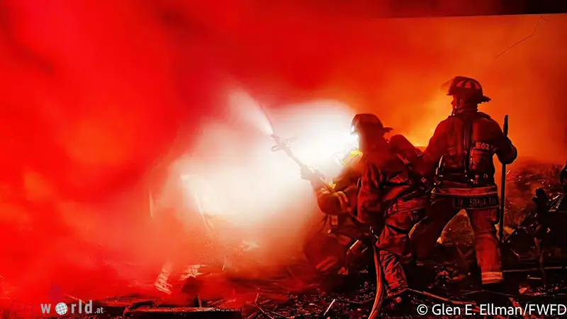 Die Feuerwehr von Fort Worth, Einheit 18, traf innerhalb von nur drei Minuten am Einsatzort ein und stellte fest, dass im zweiten Stock des Hauses ein heftiges Feuer wütete. Während sie mit der Brandbekämpfung begannen, leiteten andere eintreffende Einsatzkräfte Such- und Rettungsmaßnahmen sowie zahlreiche weitere Aufgaben ein.