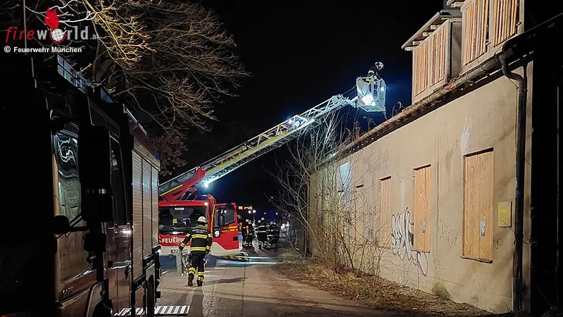 Gegen 18:10 Uhr bemerkten zwei Spaziergänger dichten schwarzen Rauch, der aus einem Kamin des stillgelegten Kieswerks aufstieg, sowie Flammenschein im Inneren des Gebäudes. Sie alarmierten umgehend die Feuerwehr und wiesen die Einsatzkräfte ein. Ein Atemschutztrupp der Feuerwehr München begab sich mit einem Hohlstrahlrohr in das Gebäude und entdeckte einen völlig überfüllten, brennenden Ofen. Der Raum war bereits leicht verraucht. Die Einsatzkräfte entschieden sich, das Brandgut im Ofen kontrolliert abbrennen zu lassen.