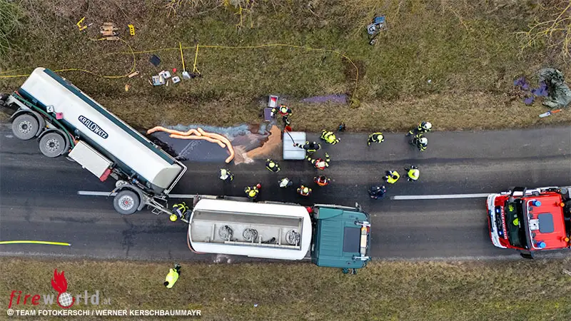 Oö: Tankwagenunfall in Hargelsberg → Austritt von Heizöl aus umgestürztem Anhänger