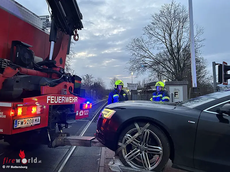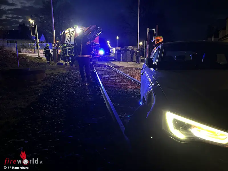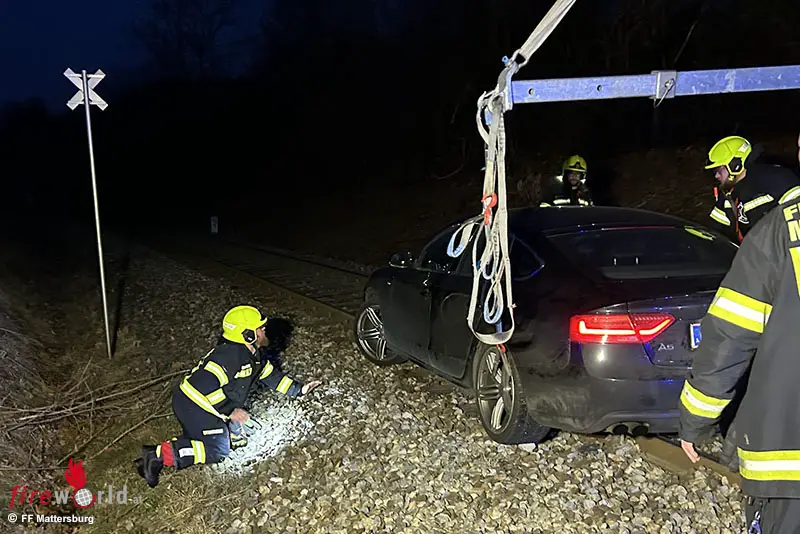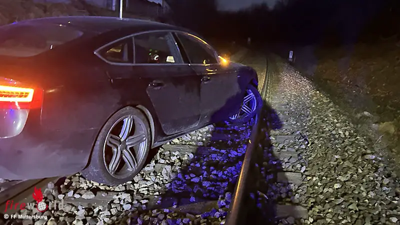 MATTERSBURG (BGLD): Am 10. Februar 2025 wurde die Feuerwehr Mattersburg zu einer Fahrzeugbergung im Stadtgebiet alarmiert. Im Bereich der Eisenbahnkreuzung in der Hirtengasse-Feldgasse kam ein Pkw-Lenker von der Fahrbahn ab und landete mit seinem Fahrzeug auf den Gleisen.