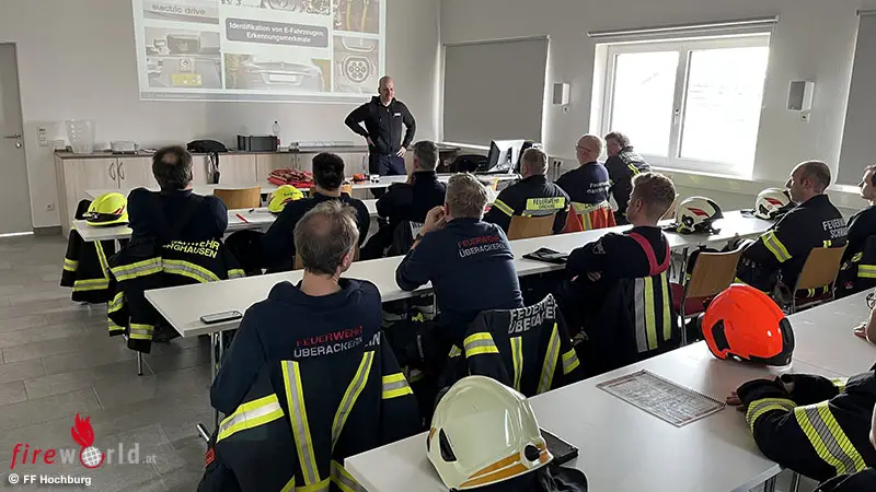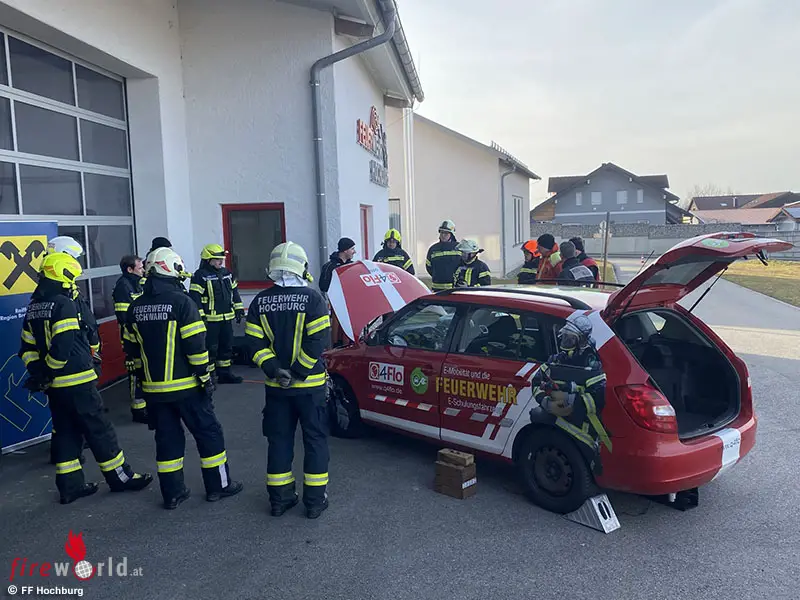 HOCHBURG-ACH (OÖ): Im Schatten der steigenden Zulassungszahlen von Elektrofahrzeugen werden auch die Einsatzkräfte der Feuerwehr immer häufiger mit elektrischen Antrieben konfrontiert. Gegenüber der konventionellen Antriebstechnik bergen elektrifizierte Fahrzeuge jedoch neue Herausforderungen für die Einsatzmannschaft. Die verbauten Hochspannungssysteme und Batterien erfordern angepasste Maßnahmen im technischen Einsatz und im Brandfall. Damit steigt auch die Notwendigkeit, Feuerwehrleute im Umgang mit verunfallten E-Autos zu schulen.
