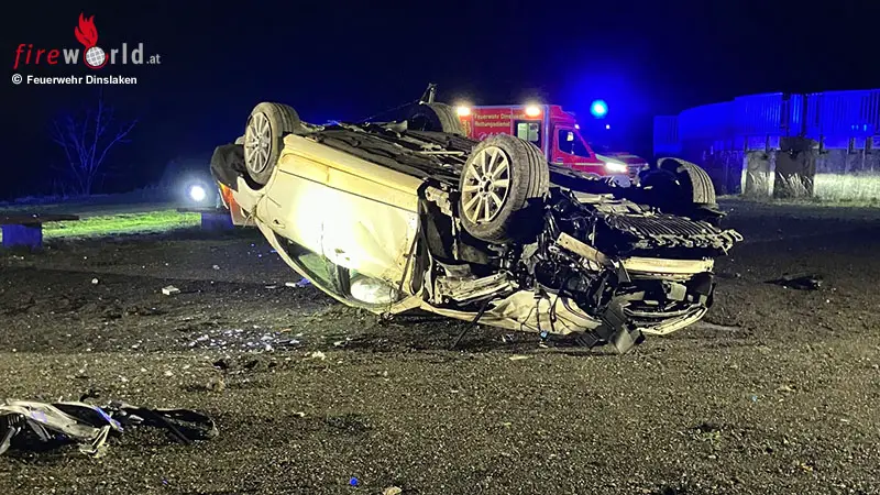 Durch die hohe Geschwindigkeit landete das Auto ca. 90m hinter dem Kreisverkehr auf einer Schotterfläche. Der Fahrer verletzte sich so schwer, dass er mit dem Notarzt in ein Krankenhaus gefahren werden musste. Die Einheit Hauptwache der Feuerwehr Dinslaken war zum Ausleuchten an der Einsatzstelle und unterstützte den Rettungsdienst bei der medizinischen Versorgung. Die Ermittlungen zur Unfallursache dauern zur Zeit noch an.
