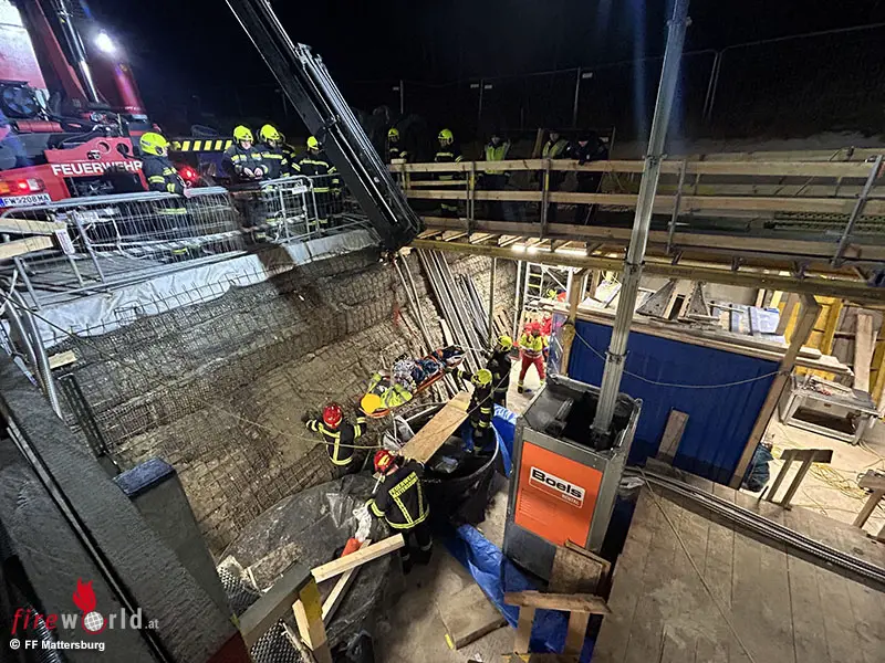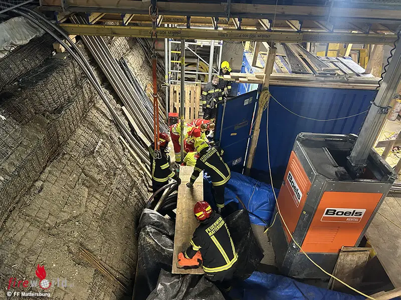 Um den Arbeiter welcher sich auf der Baustelle befand, möglichst schonend zu retten, wurde er nach der Erstversorgung durch Rotes Kreuz und Notärztin mittels Kran und Schleifkorbtrage aus dem tiefer gelegenen Baustellenabschnitt gerettet und anschließend in ein umliegendes Krankenhaus gebracht.