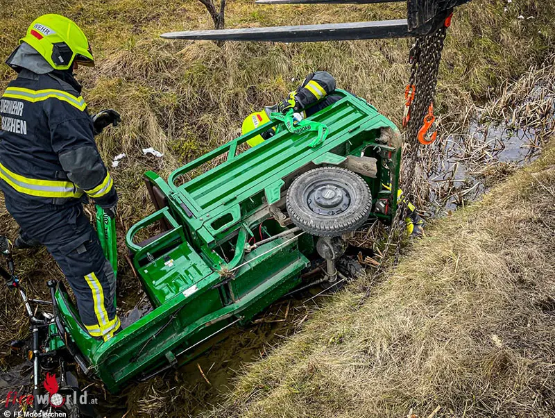 Das Fahrzeug wurde so aus dem wasserführenden Graben gehoben und gesichert abgestellt. Im Anschluss wurden sämtliche Batterien abgeschlossen. Der Lenker wurde vom Roten Kreuz zur weiteren Behandlung ins Krankenhaus eingeliefert.