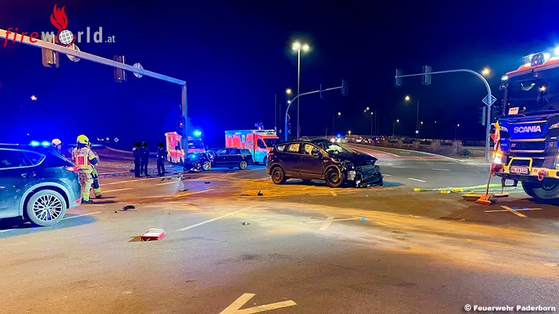 PADERBORN (D): Am Donnerstag, den 20. Februar 2025, ereignete gegen 18.15 Uhr ein Verkehrsunfall mit mehreren beteiligten Pkw. Im Kreuzungsbereich Neinz-Nixdorf-Ring / Frankfurter Weg / Bahnhofstraße stießen drei Fahrzeuge zusammen, in denen sich insgesamt fünf Personen befanden.