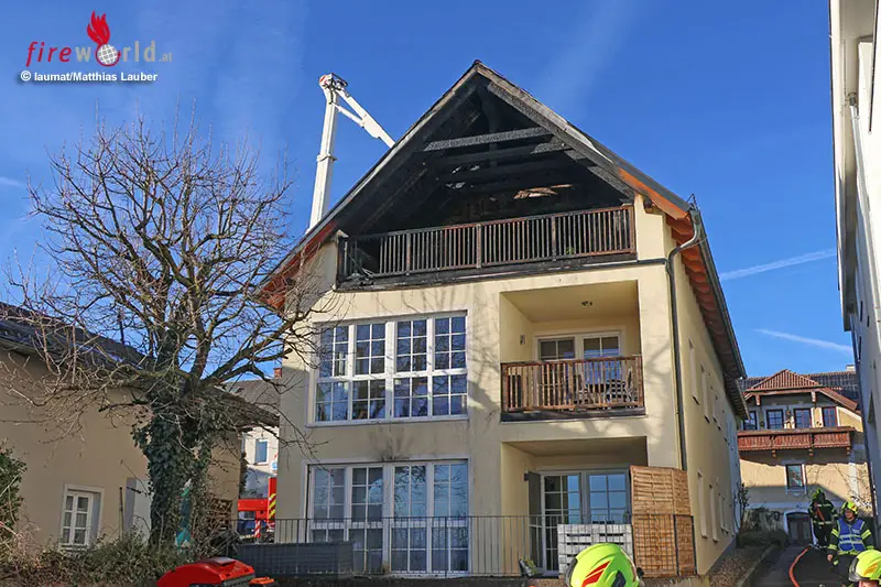 Die Feuerwehren wurden am Nachmittag mit dem Einsatzbegriff „Brand Gebäude mehrstöckig“ ins Ortszentrum von Seewalchen am Attersee gerufen. Im Dachgeschoß eines dortigen Gebäudes ist es im Bereich einer Dachgeschoßwohnung zu einem Brand gekommen, welcher auch auf das Dach des Hauses übergegriffen hat.