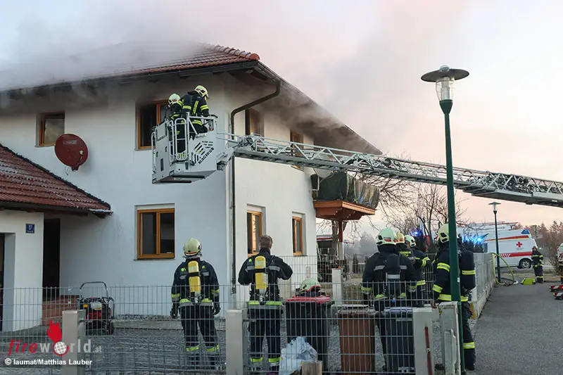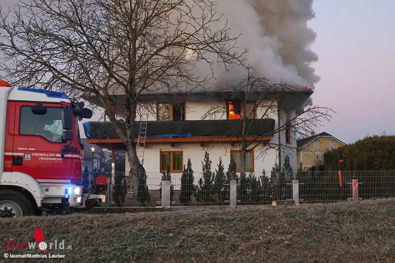WELS (OÖ): Nahezu in Vollbrand stand Montagfrüh, 3. März 2025, der erste Stock eines Einfamilienhauses in Wels-Schafwiesen. Einsatzkräfte von zwei Feuerwehren, Rettung und Polizei waren im Einsatz.