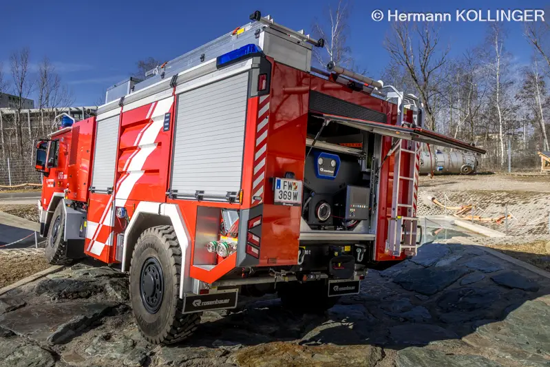 Der integrierte Löschwassertank fasst 3.200 Liter, die Löschwasserpumpe N35 liefert bis zu 3.000 l/min bei 10 bar und über den Frontwasserwerfer RM15 können bis zu 1.000 l/min Wasser abgegeben werden. Beim sogenannten Pump-and-Roll-Betrieb kann der Löschvorgang auch während der Fahrt fortgesetzt werden. Zusätzlich verfügt das Fahrzeug über 300 Liter Wasser für den Selbstschutz. Mit der Selbstschutz-Funktion ist es insbesondere beim Waldbrandeinsatz möglich, über Düsen die Reifen und den Fahrzeugboden mit Wasser zu besprühen. Darüber hinaus können die Bodendüsen zur Bekämpfung von Flächenbränden eingesetzt werden.