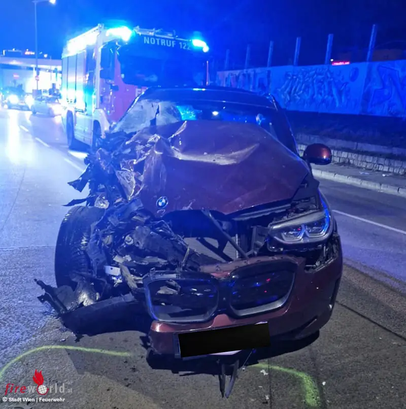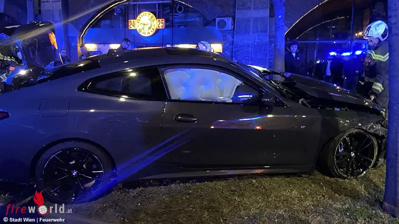 WIEN: Zwei schwere Verkehrsunfälle innerhalb weniger Minuten beschäftigen die Berufsfeuerwehr Wien in den frühen Sonntag-Morgenstunden, 2. März 2025. Am Lerchenfelde Gürtel kommt ein Pkw von der Straße ab und entwurzelt einen Baum. Wenige Minuten später kollidieren am Gaudenzdorfer Gürtel zwei Pkw, wobei einer in einen geparkten, aber leeren Reisebus prallt. Eine Person wird verletzt.
