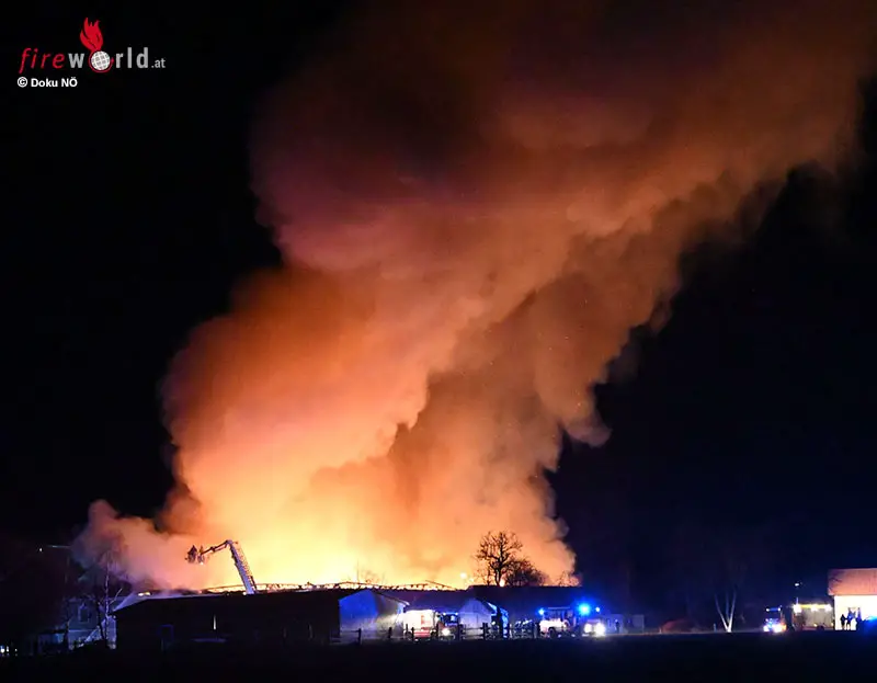 Nö: Über 200 Kräfte bei Großfeuer auf Bauernhof in Brunnwiesen / Ruprechtshofen