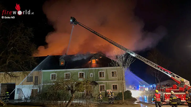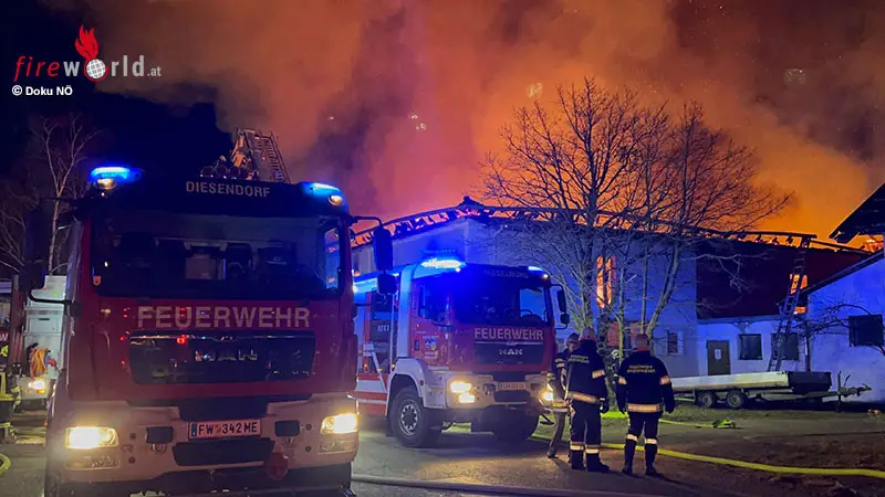 RUPRECHTSHOFEN (NÖ): Kurz nach Mitternacht wurden am 9. März 2025 mehrere Feuerwehren aus den Bezirken Melk und Scheibbs zu einem Großbrand auf einem Bauernhof bei Brunnwiesen (Gemeinde Ruprechtshofen) alarmiert.