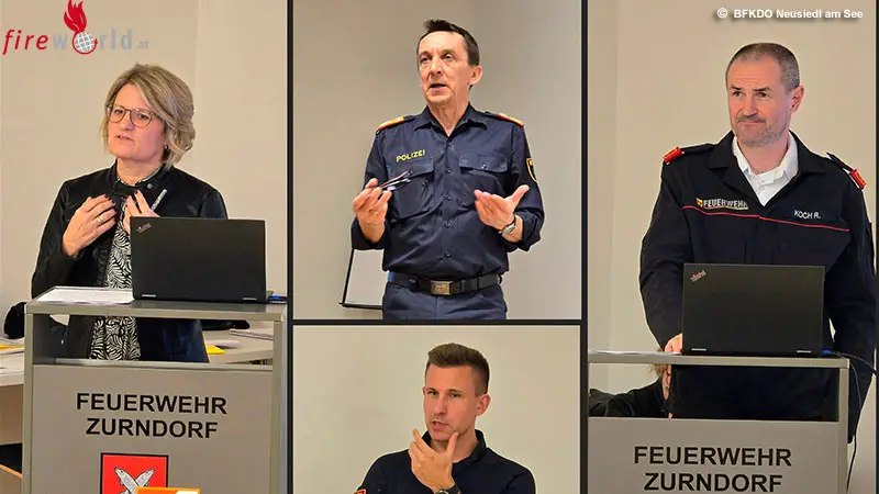 ZURNDORF (BGLD): Am Freitagabend, dem 7. März 2025, lud Bezirkshauptfrau Mag. Ulrike Zschech von der Bezirkshauptmannschaft Neusiedl am See ins Feuerwehrhaus Zurndorf zu einem BOS Vernetzungstreffen (Behörden und Organisationen mit Sicherheitsaufgaben). Dieser Einladung folgten zahlreiche Einsatzkräfte von Feuerwehr, Polizei, Rotem Kreuz und Samariterbund.