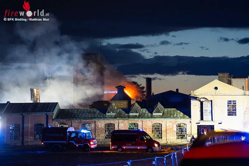 Nö: Dachstuhlbrand in alter Bleiwarenfabrik Gumpoldskirchen → 130 Kräfte im Einsatz