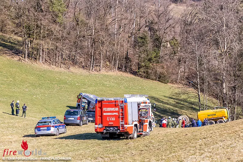 Gegen 13:16 Uhr wurden drei Feuerwehren mit der Alarmmeldung „Person unter Fahrzeug – Maschine“ nach Niederkappel gerufen. Auch der Rettungsdienst war mit mehreren Fahrzeugen, einem Notarzt und einem Rettungshubschrauber schnell vor Ort. Laut ersten Berichten hatte sich der Traktor auf einer Wiese nahe eines Waldstücks überschlagen, wobei der Landwirt unter dem tonnenschweren Fahrzeug eingeklemmt wurde.