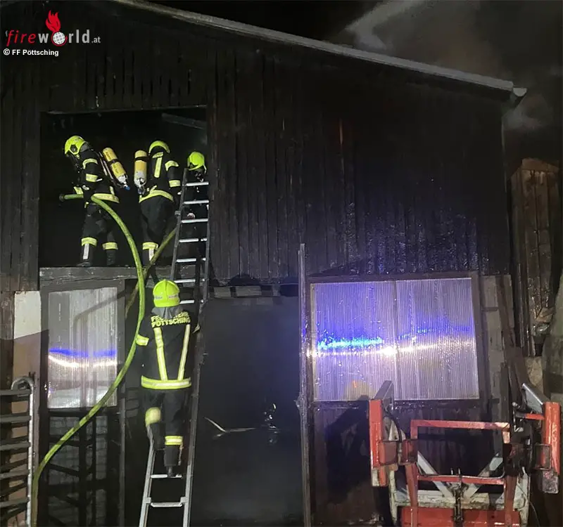 PÖTTSCHING (BGLD): In der Nacht auf den 4. April 2025 wurde die Freiw. Feuerwehr Pöttsching um 02:00 Uhr zu einem Brand der Alarmstufe B3 in Pöttsching alarmiert.