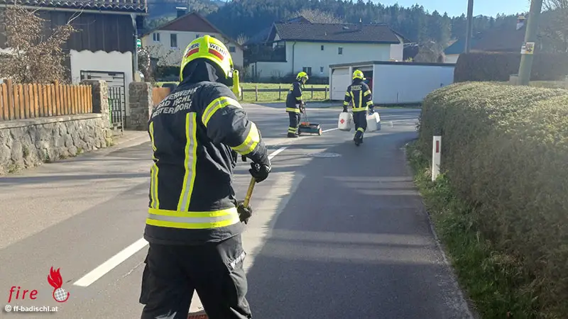 Nach der Lageerkundung durch den Kommandanten Andreas Reiter und der Feststellung, dass sich die Spur bis in die Steinfeldstraße nach Rettenbach zieht, wurden die Einheiten der Feuerwache Rettenbach und der Hauptfeuerwache Bad Ischl zur Unterstützung nachalarmiert. Mit vereinten Kräften konnte die Gefahr für die Umwelt und die Verkehrsteilnehmer schnell beseitigt werden. Mit mehreren Säcken Ölbindemittel und der Kehrmaschine vom städtischen Wirtschaftshof, konnte der Auftrag kurz nach 18:00 Uhr beendet werden. Im Einsatz standen die Feuerwachen Reiterndorf und Rettenbach ,die Hauptfeuerwache Bad Ischl, eine Streife der Polizei und die Kehrmaschine vom Wirtschaftshof.