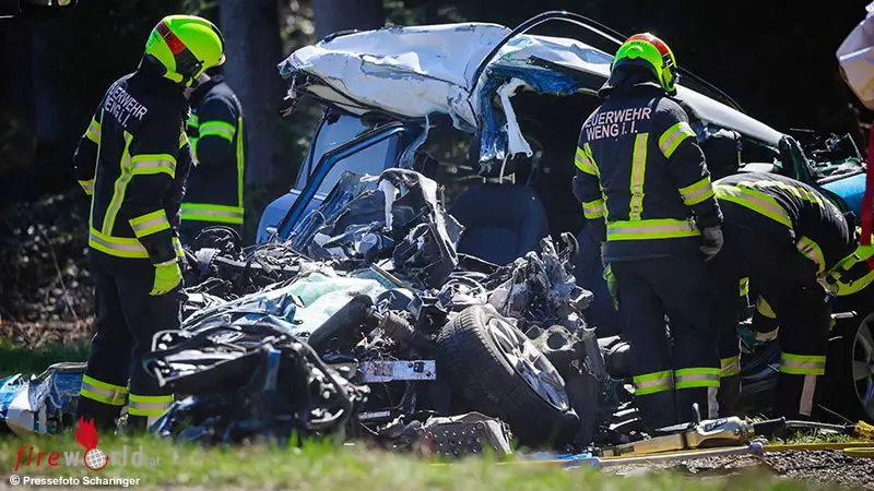 Insgesamt waren 30 Feuerwehrleute von den FF Weng im Innkreis, Mining und St. Peter am Hart mit der Fahrzeugbergung und den Reinigungsarbeiten beschäftigt.