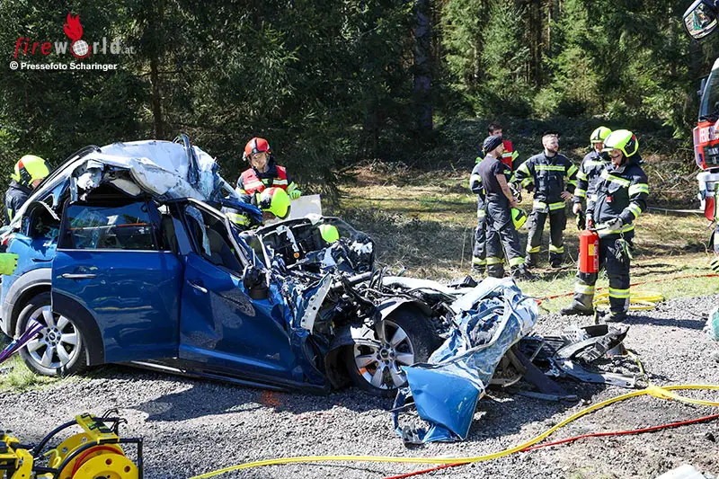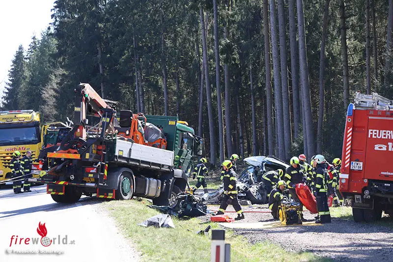 Oö: Pkw prallt auf B 148 frontal in Lkw → Frau (70) und Hund ums Leben gekommen