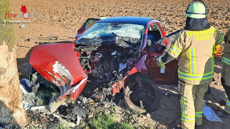 D: Pkw in Kleve gegen Baum geprallt → Lenker eingeschlossen