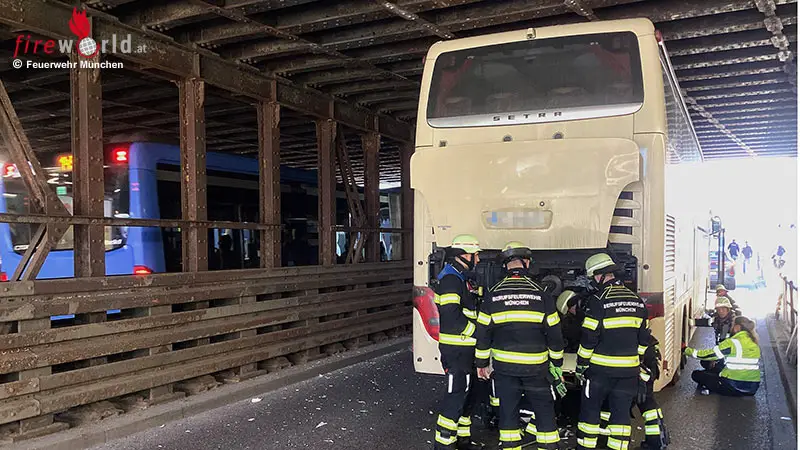 Bayern: Doppeldeckerbus steckt in Unterführung in München