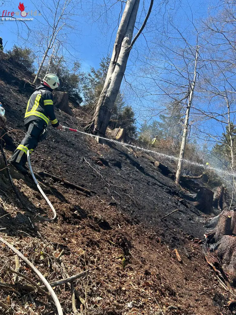 Gegen 16 Uhr bekämpften die Feuerwehren noch einzelne Glutnester und Wurzelstöcke, welche mittels Drohne und Wärmebildkamera der Feuerwehr Völkermarkt genau lokalisiert und bekämpft werden können. Im Einsatz stehen die Feuerwehren Griffen, Ruden, St. Peter am Wallersberg, Untermitterdorf und Völkermarkt mit rund 75 Mann.