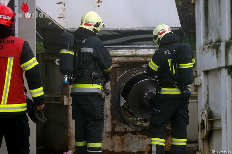 WELS-PERNAU (OÖ): Die Feuerwehr Wels stand Samstagfrüh, den 19. April 2025, bei einem Brand in einer Kartonagenpresse bei einer Filiale einer Discounterkette in Wels-Pernau im Einsatz. Die Einsatzkräfte der Feuerwehr wurden Samstagfrüh alarmiert, weil aus einer Kartonagenpresse Rauch aufstieg und Brandgeruch bemerkt wurde.