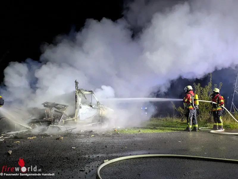 Aufgrund der Meldung alarmierte die Rettungsleitstelle neben der Polizei, die Freiwilligen Feuerwehren aus Thieshope und Brackel sowie das Tanklöschfahrzeug der FF Ohlendorf und den bei der FF Hanstedt stationierten Einsatzleitwagen der Samtgemeindefeuerwehr. Die innerhalb weniger Minuten eingetroffenen Einsatzkräfte fanden ein im Vollbrand stehendes Wohnmobil auf dem Pendlerparkplatz vor.