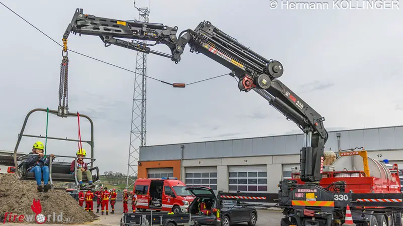 ALKOVEN (OÖ): Was ist das wieder für ein Humbug der Feuerwehr Alkoven mag man vielleicht denken. Ein Kern Wahrheit ist an dieser April-2025-Höhenretter-Übung dann schon dran, denn ein echter Sessellift-Sessel war dann schon dabei und die Liftanlage wurde ein klein wenig mit dem Kranfahrzeug improvisiert, um jedoch den ernsten Hintergrund für diese Übung liefern zu können.