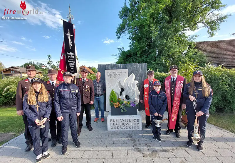 ÜBERACKERN (OÖ): Anlässlich des Florianiamts wurde am 3. Mai 2025 das neue Feuerwehrdenkmal der Freiwilligen Feuerwehr am Friedhof in Überackern (Bezirk Braunau) durch Bezirks-Feuerwehrkurat Mag. Markus Klepsa und Pater Efrem gesegnet und seiner Bestimmung übergeben.