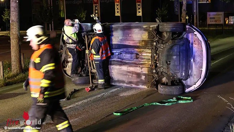 Oö: Fahrmanöver misslungen: Auto nach Ausfahrt aus Kreisverkehr in Wels umgestürzt