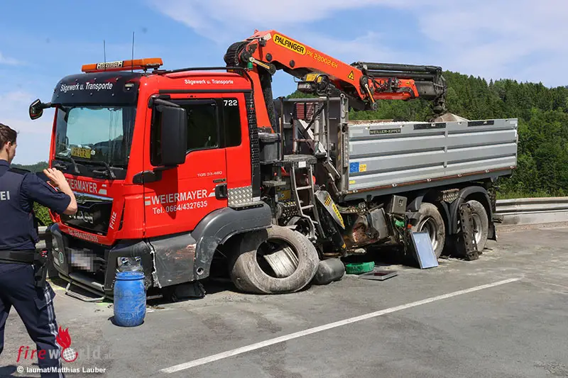Der exklusive Sportwagen wurde dabei auf einer Seite schwerste beschädigt. Der Lkw wurde ebenso auf der linken Seite schwer beschädigt. Aus dem Tank trat eine größere Menge Betriebsmittel aus, welche gebunden werden musste. Der Lenker war beim Eintreffen der beiden zur Personenrettung alarmierten Feuerwehren bereits aus dem Fahrzeug befreit. Er wurde schwer verletzt. Der Lkw-Lenker überstand den Unfall offensichtlich unverletzt.