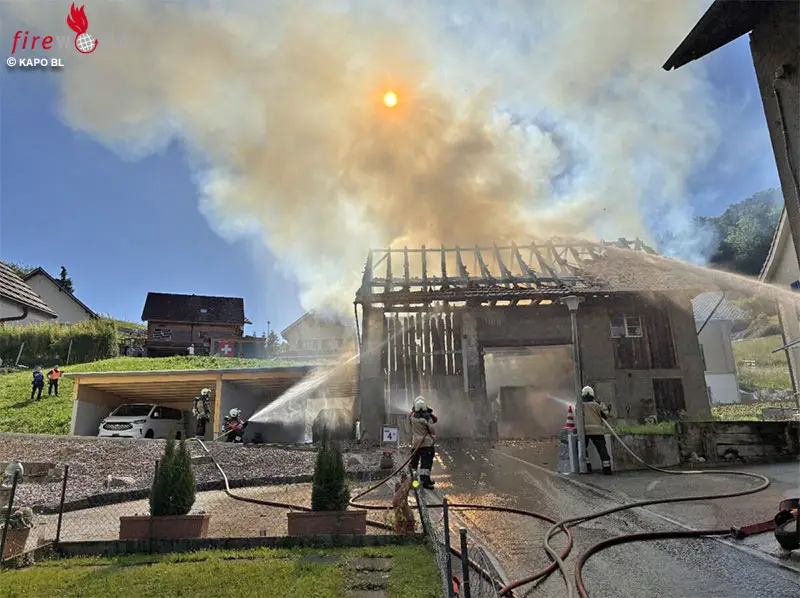 LIEDERTSWIL (SCHWEIZ): Am Freitagnachmittag, 31. Mai 2025, kurz nach 17.00 Uhr, kam es an der Hinterhofstraße in Liedertswil BL zu einem Brandausbruch. Dabei wurde eine Scheune komplett zerstört. Verletzt wurde niemand. Die Feuerwehr stand mit einem Großaufgebot im Einsatz.