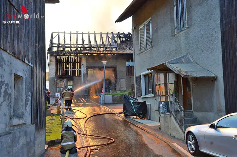 Die Einsatzleitzentrale der Polizei Basel-Landschaft erhielt um 17.04 Uhr die Meldung, dass an der Hinterhofstraße eine Scheune im Vollbrand sei. Die sofort aufgebotenen Feuerwehren waren rasch vor Ort. Diese konnten den Brand rasch löschen. Allerdings wurde die Scheune bei dem Brand komplett zerstört.