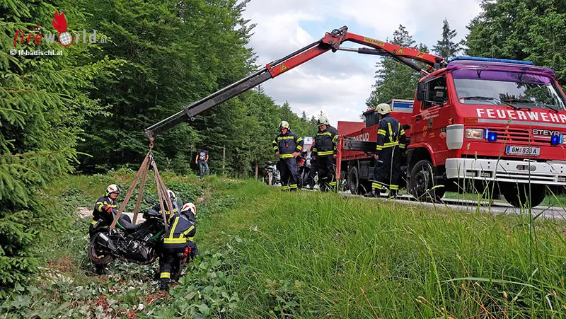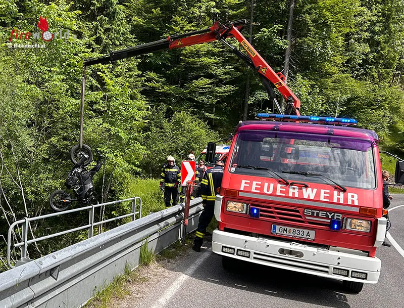 Oö: Zwei Motorradbergungen aus Bachbett in Mitterweißenbach / Bad Ischl
