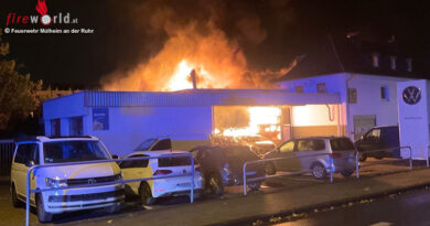 Gegen 04.30 Uhr wurde der Leitstelle in mehreren Notrufen ein Feuer in dem mehrstöckigen Wohngebäude gemeldet und daraufhin ein Löschzug und der Rettungsdienst zur Einsatzstelle alarmiert. Aufgrund weiter eingehender Notrufe, in denen sichtbarer Feuerschein geschildert wurde und dass bereits Rauch in den Treppenraum drängen würde, wurde die Alarmstufe noch während der Anfahrt erhöht und weitere Kräfte hinzugezogen. Kurz nach dem Eintreffen war klar, dass es nicht in einer Wohnung, sondern auf einem Balkon im Dachgeschoss brannte.