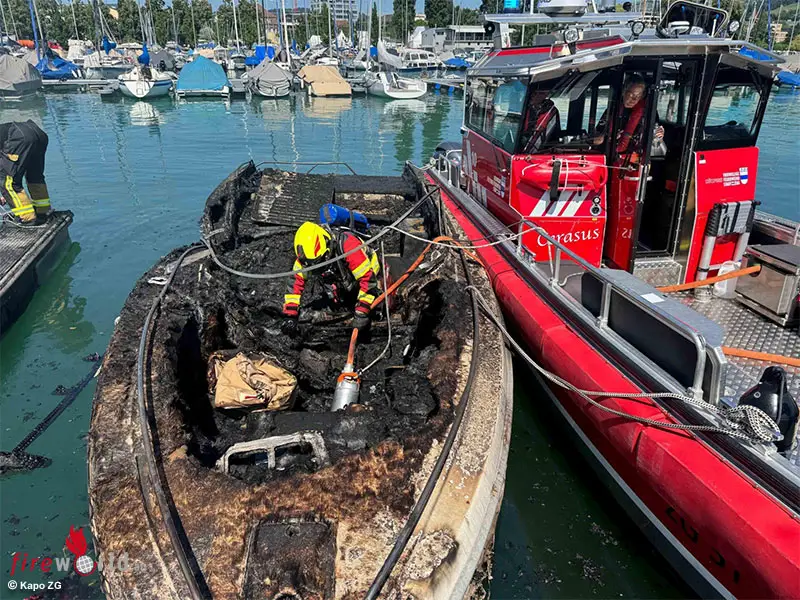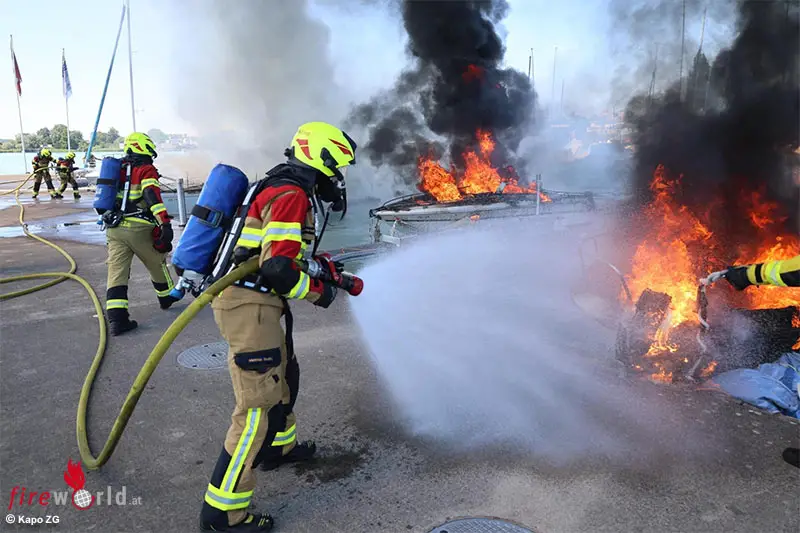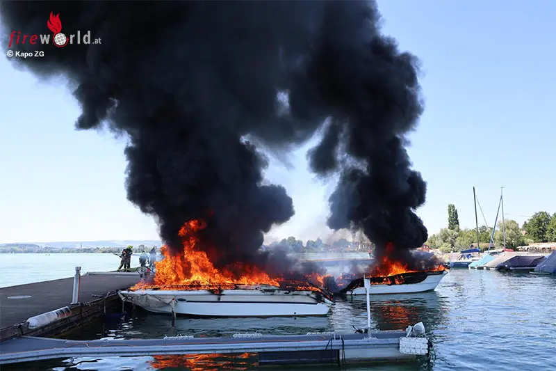 ZUG (SCHWEIZ): Am Sonntagnachmittag, dem 29. Juni 2025, brach im Hafen von Zug ein Feuer aus, das fünf Boote beschädigte. Personen wurden nicht verletzt, die Brandursache wird untersucht.