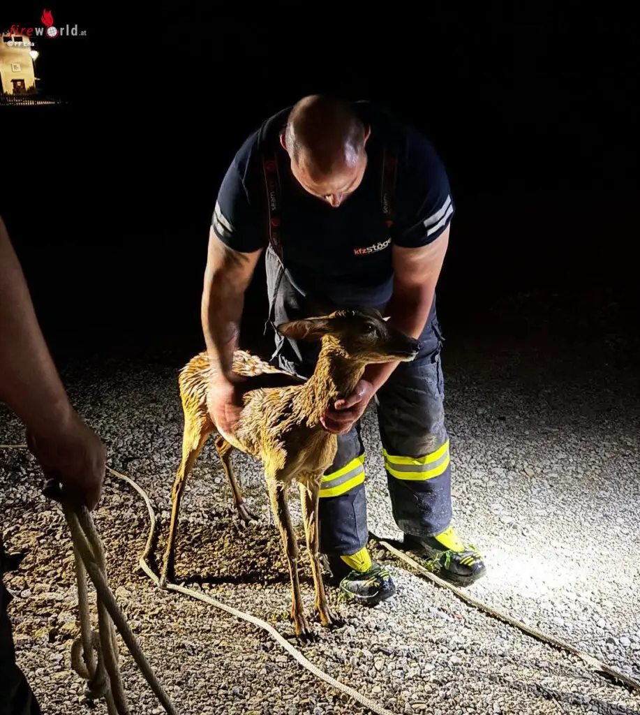 ST. PANTALEON-ERLA (NÖ): Um 00.02 Uhr des 1. Juli 2025 wurde die Feuerwehr Erla zu einer Tierrettung nach Klein Erla alarmiert. Bei der Ankunft schwamm ein junges Reh in einen Teich und versuchte vergeblich, wieder herauszukommen.