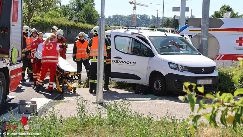 WELS (OÖ): In Wels-Pernau musste Dienstagvormittag, 1. Juli 2025, nach einem Kreuzungsunfall zweier Kleintransporter eine der beteiligten Personen von der Feuerwehr aus dem Unfallfahrzeug befreit werden.