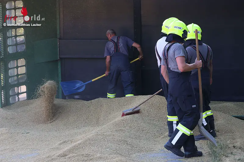 Weil nebenan im Bereich des Freibades der Notarzthubschrauber landete, wurde kurzzeitig Schlimmeres befürchtet, der Unfall mit dem Traktorgespann verlief jedoch zum Glück glimpflich. Die Einsatzkräfte der Feuerwehr beseitigten die verlorene Ladung, unter anderem mit Hilfe des Gemeindetraktors. In weiterer Folge wurden der umgestürzte Anhänger sowie der Traktor in Eigenregie durch die Unfallbeteiligten – mit Unterstützung der Feuerwehr – geborgen.