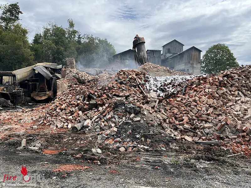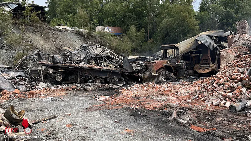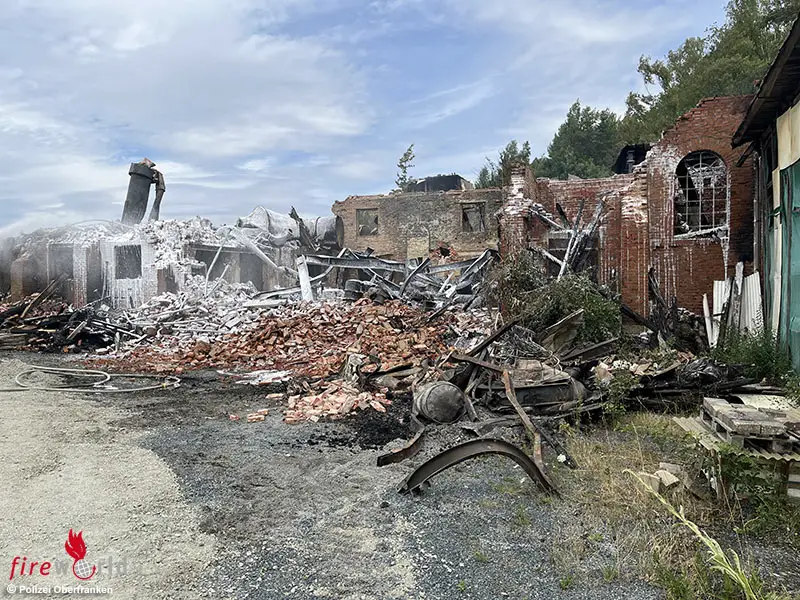 Die Lösch- und Abrissarbeitenerforderten den Einsatz schwerer Geräte, um Gebäudeteile gezielt abzutragen. Insgesamt waren rund 200 Einsatzkräfte von Feuerwehr, Technischem Hilfswerk und Rettungsdienst vor Ort. Nach ersten Schätzungen beläuft sich der entstandene Sachschaden auf einen siebenstelligen Eurobetrag. Personen kamen glücklicherweise nicht zu Schaden Die Brandermittler der Kriminalpolizei Hof haben die Ermittlungen zur noch unklaren Brandursache aufgenommen. Am Morgen war zudem ein Polizeihubschrauber im Einsatz, um mögliche Brandnester im Umfeld zu erkunden und Übersichtsaufnahmen zu erstellen.