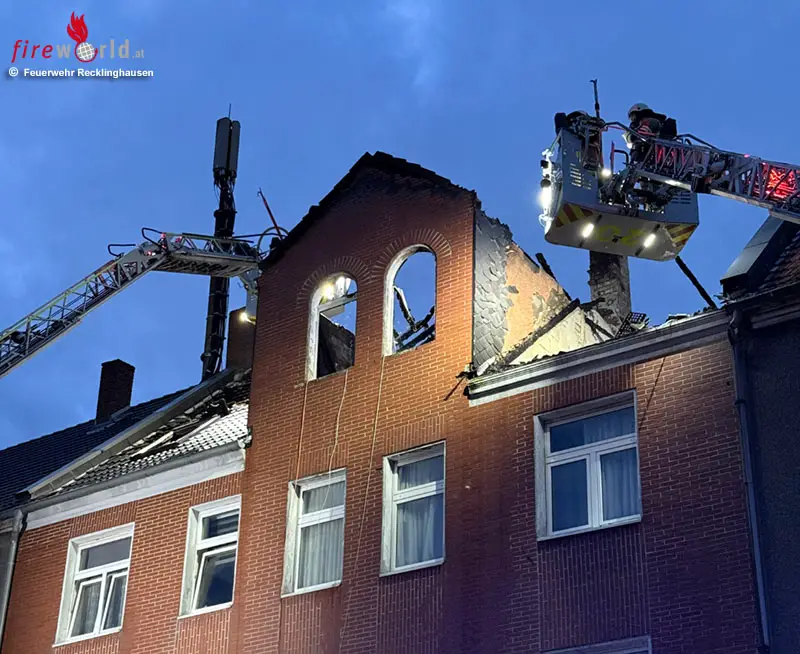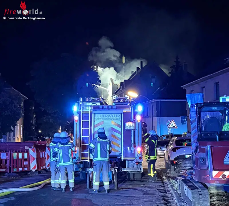 RECKLINGHAUSEN (DEUTSCHLAND): In der Nacht zu Sonntag, dem 6. Juli 2025, wurde die Feuerwehr Recklinghausen um 02:25 Uhr zu einem Dachstuhlbrand in die Niederstraße im Stadtteil Röllinghausen alarmiert. Bereits auf der Anfahrt war der Feuerschein weithin sichtbar.