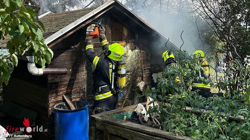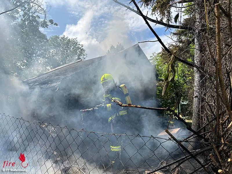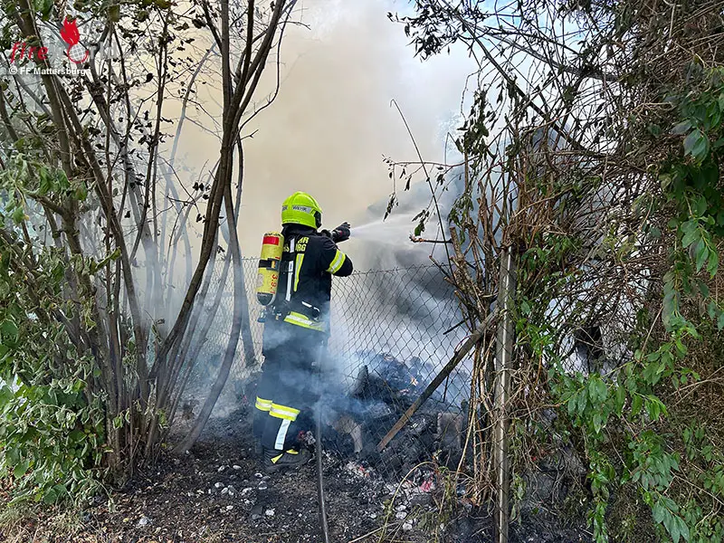 MATTERSBURG (BGLD): Am 4. Juli 2025 wurde die Feuerwehr Mattersburg gemeinsam mit der Polizei in den frühen Nachmittagsstunden zu einem unklaren Brandgeschehen alarmiert. Vor Ort stellte sich heraus, dass eine Gartenhütte sowie ein angrenzender Unterstand in Vollbrand standen.
