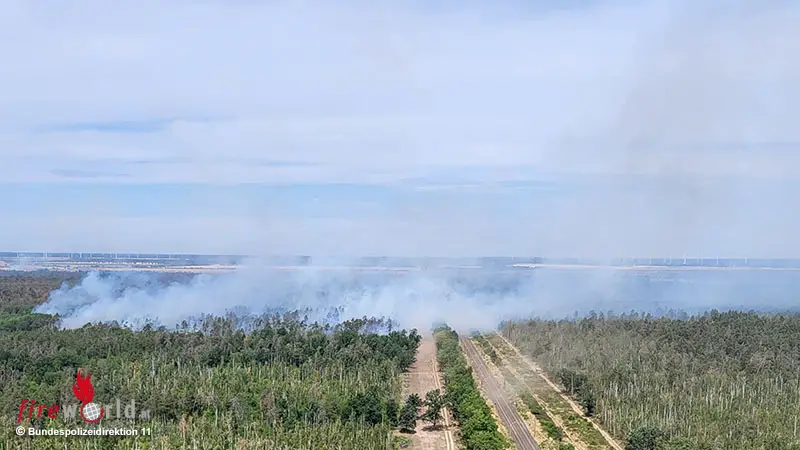 „Ob kilometerlange Förderstrecken oder Wassertransport mit Lkw: Wir unterstützen mit Personal und Fachtechnik, so dass die Feuerwehr effektiv löschen kann.“ Im Einsatzgebiet in der Gohrischheide pumpen die ehrenamtlichen Einsatzkräfte der beteiligten Fachgruppen Wasserschaden/Pumpen kontinuierlich (Tag und Nacht!) Wasser aus einer Kiesgrube bei Boragk.