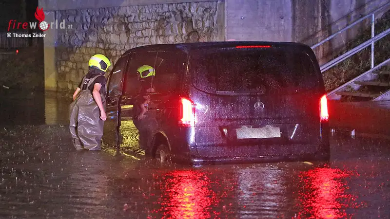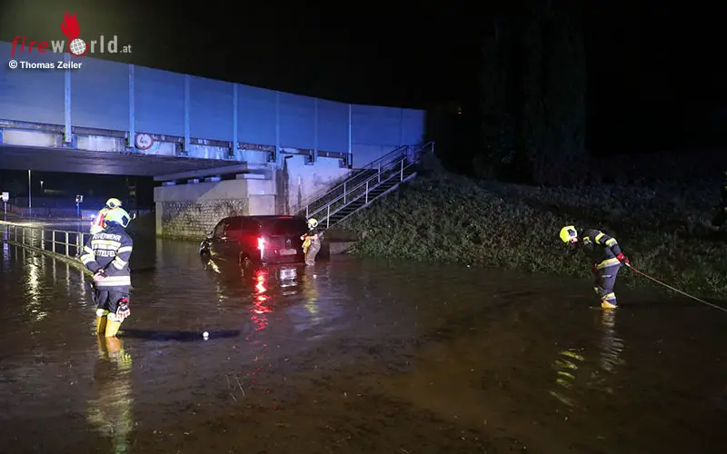 Einsatzleiter Oberfeuerwehrmann Rene Hammerl schilderte die dramatischen Momente: „Unsere Hauptaufgabe bestand darin, den betroffenen Lenker zu unterstützen und den Pkw so rasch wie möglich aus der überfluteten Unterführung zu bekommen. “Die Auspump- und Aufräumungsarbeiten dauerten bis in die frühen Morgenstunden.