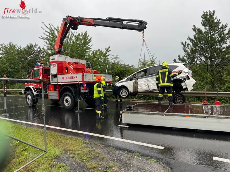 MARKT PIESTING (NÖ): Am Dienstag, den 8. Juli 2025, wurden die Feuerwehren Markt Piesting und Dreistetten um 06:54 Uhr mittels Sirene zu einem Verkehrsunfall mit zwei Fahrzeugen und in der Info „eines im Graben“ auf der B21 alarmiert.
