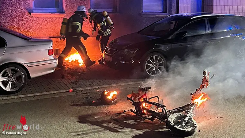 HAGEN (DEUTSCHLAND): In der Nacht auf Donnerstag, 10. Juli 2025, zündeten bislang unbekannte Täter in Hagen einen Motorroller an, der vollständig abbrannte.