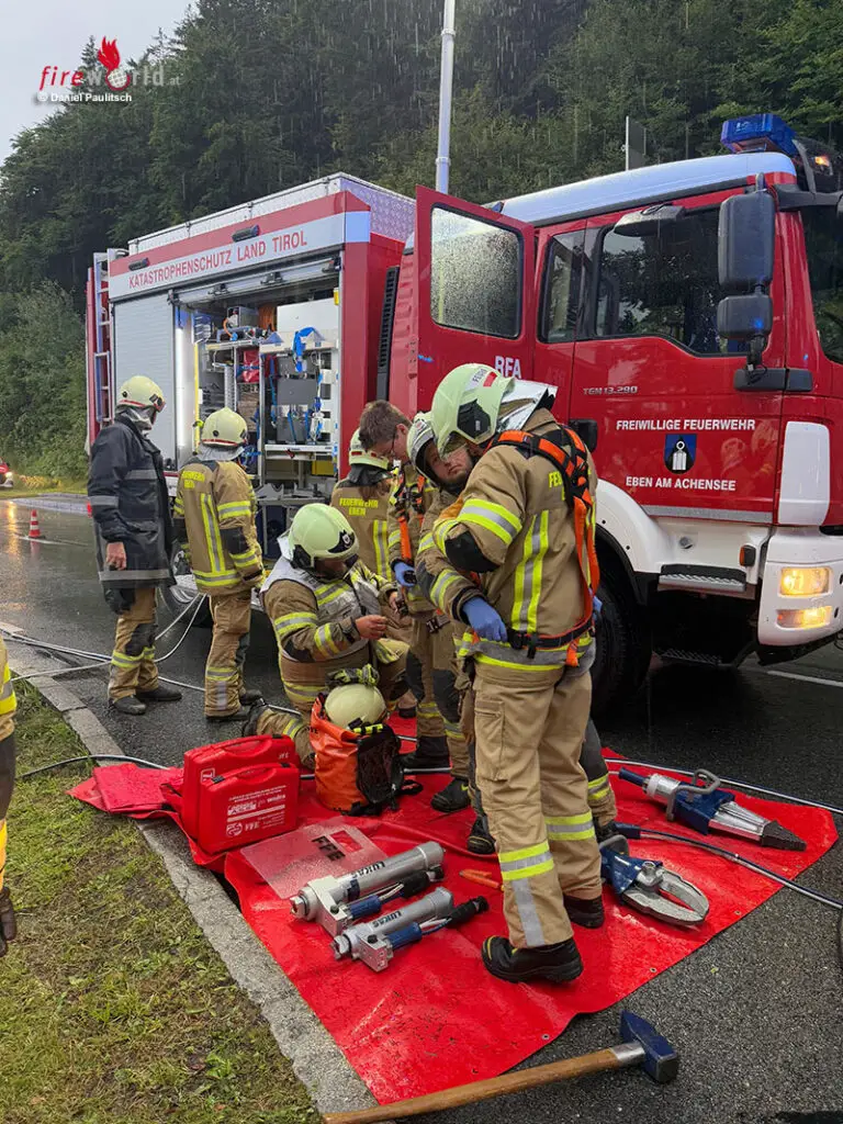 Die Freiwillige Feuerwehr Wiesing übernahm die Absicherung der Unfallstelle, den Brandschutz sowie die Absicherung des Unfallfahrzeugs. Zeitgleich arbeitete die Feuerwehr Eben am Achensee mit hydraulischem Rettungsgerät an der Befreiung der eingeklemmten Personen. Die Drehleiter der FF Eben wurde eingesetzt, um die geretteten Personen aus dem unwegsamen Gelände zu retten. Die medizinische Erstversorgung erfolgte durch das Rote Kreuz Achensee/Schwaz.