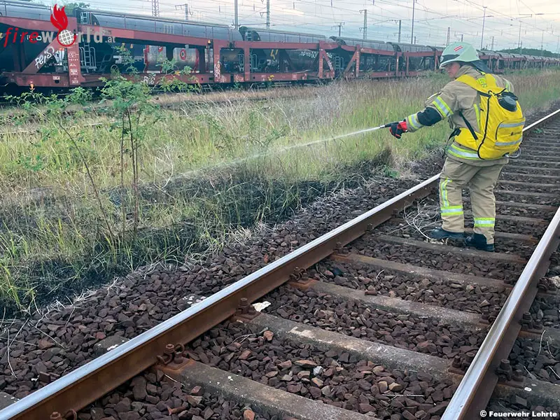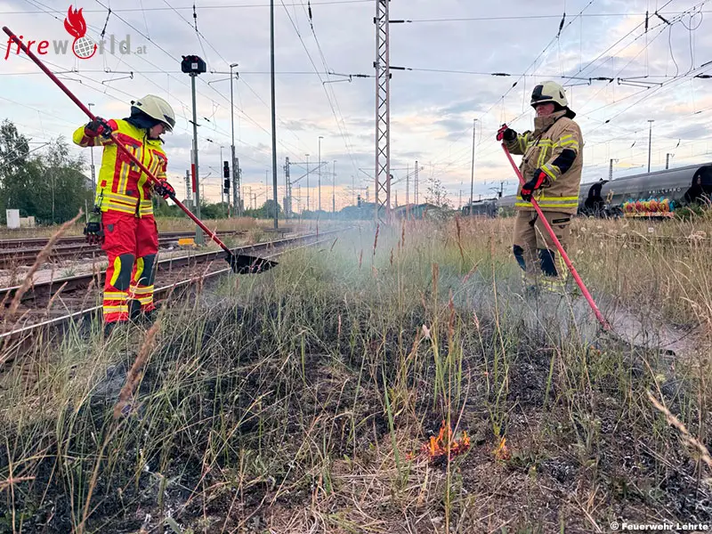 LEHRTE (D): Am heutigen Montagabend, den 14. Juli 2025, wurde die Ortsfeuerwehr Lehrte um 20.10 Uhr zu einem Böschungsbrand auf das Gelände der Deutschen Bahn am Eisenbahnlängsweg alarmiert.
